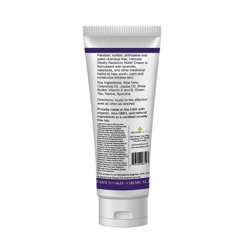 Dermavitality's Radiation Relief Cream is formulated with a blend of natural ingredients, including calendula, aloe vera, and chamomile. These ingredients work together to soothe irritated skin, reduce inflammation, and promote healing. The cream is free from harsh chemicals and fragrances, making it suitable for sensitive skin.