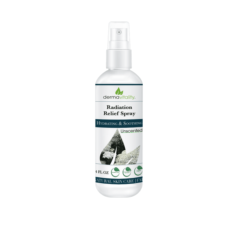 DermaVitality's Radiation Relief Spray is a carefully formulated blend of natural ingredients designed to soothe and protect skin affected by radiation treatments. You can put it in the refrigerator for cooling soothing relief. For optimal relief, apply the Radiation Relief Spray before using the cream to soothe the skin and reduce discomfort, ensuring a more comfortable application of the cream. See our list of carefully chosen natural ingredients that make our formula effective.